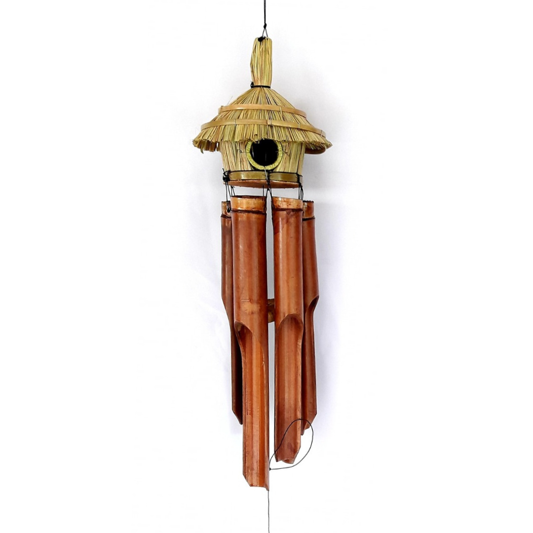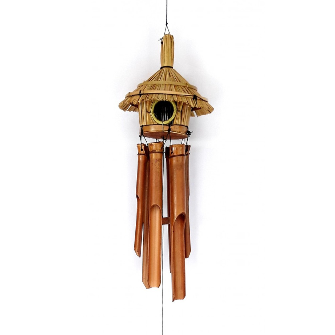Colgante de bambú con casa.