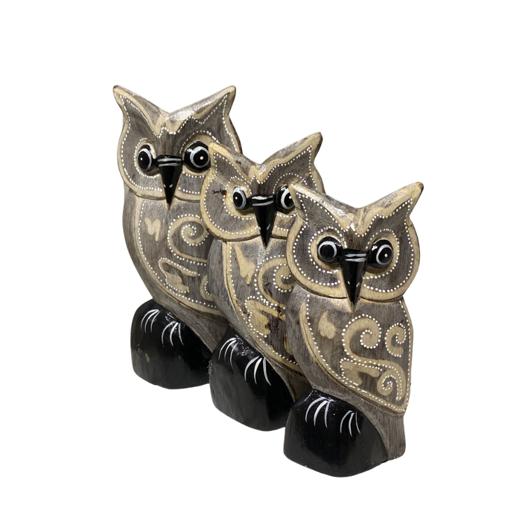 Set de búhos hechos de madera